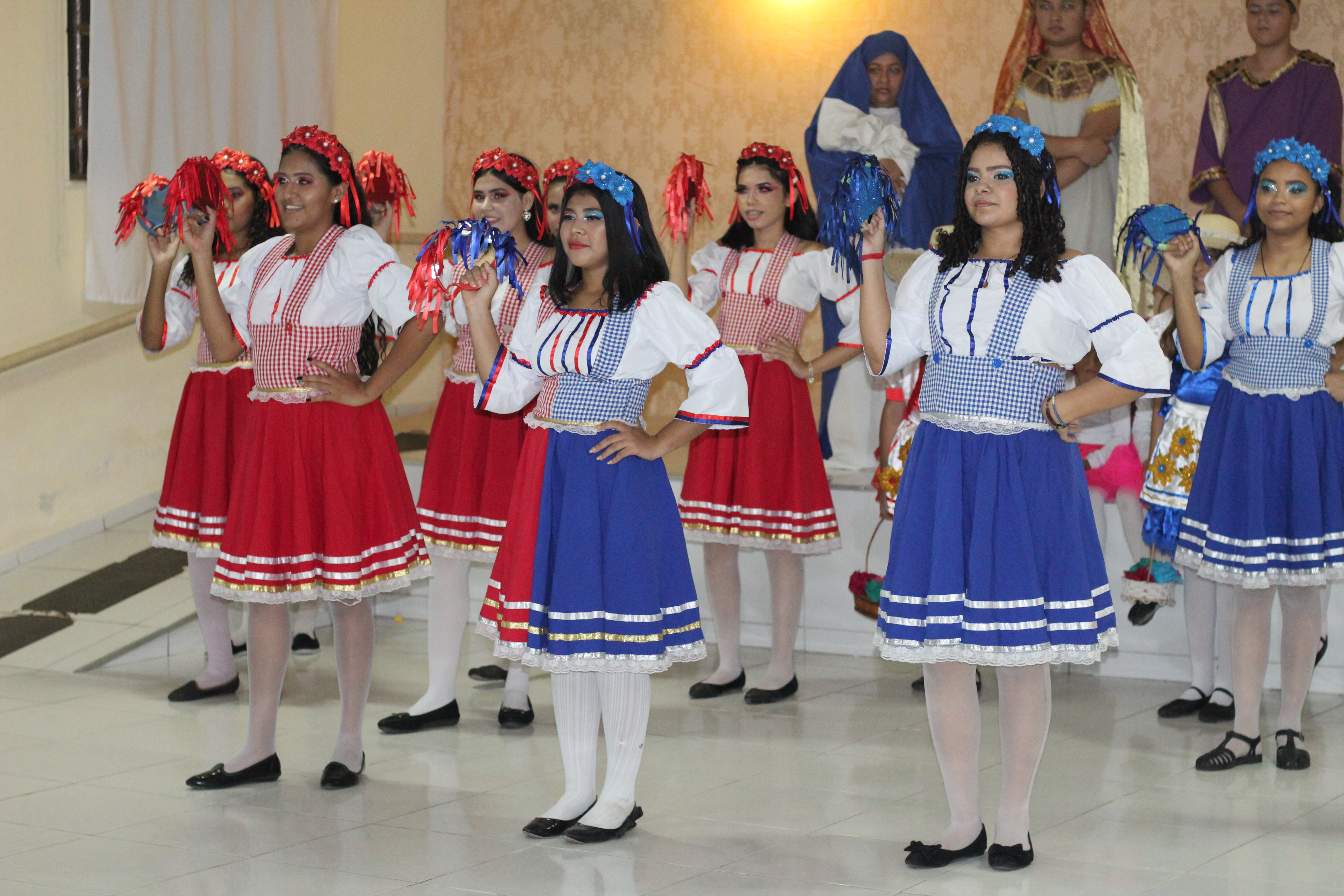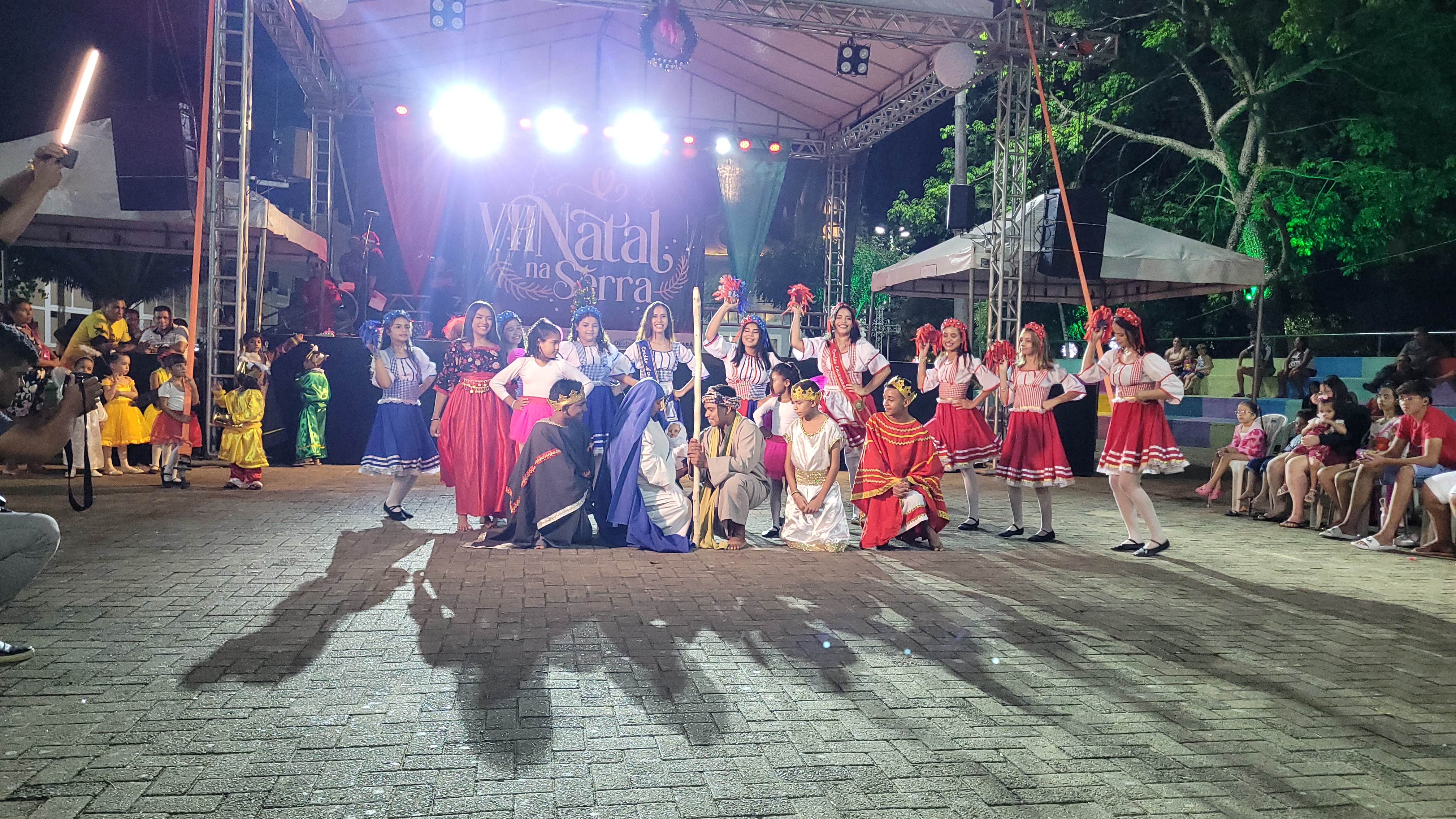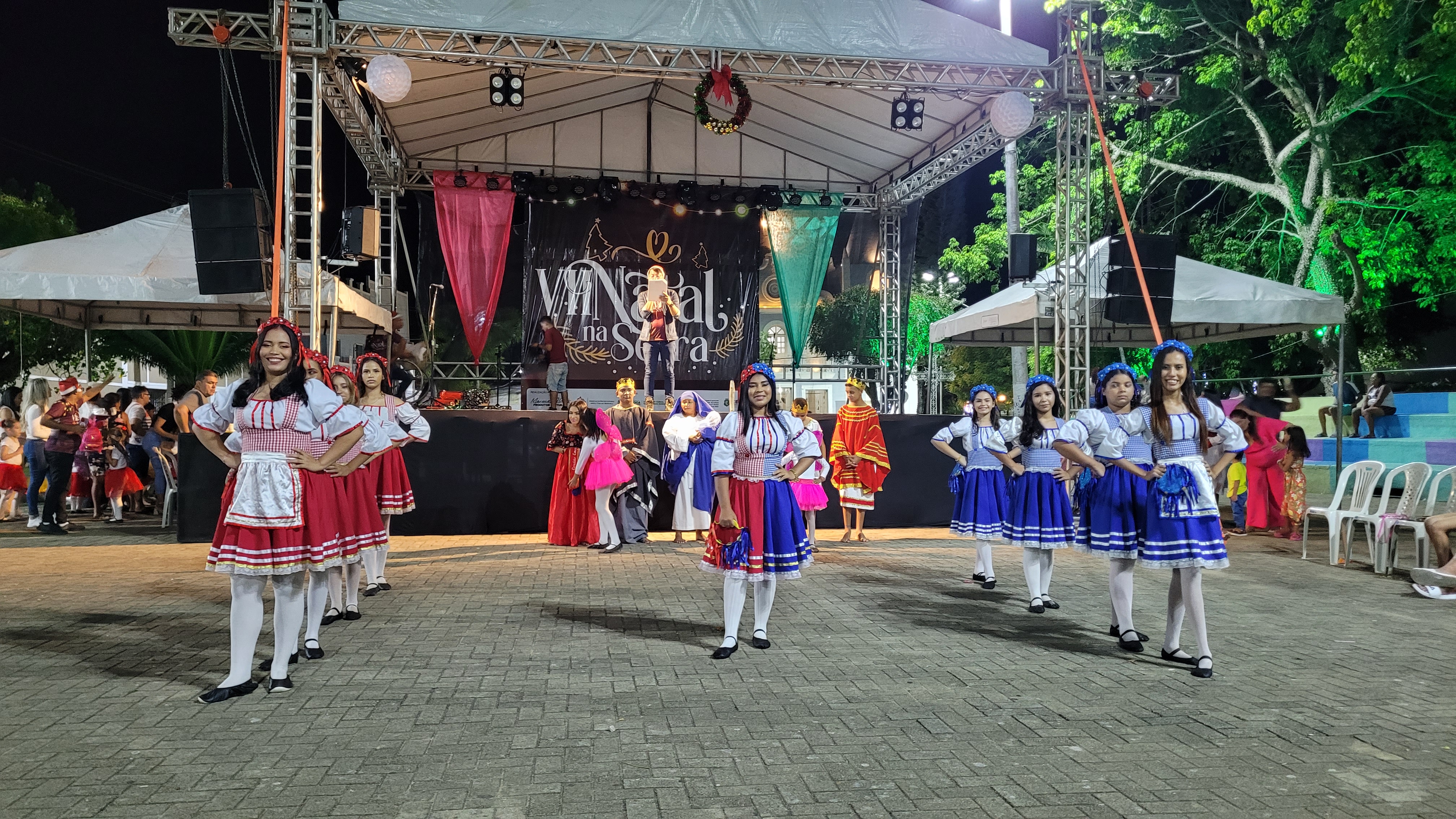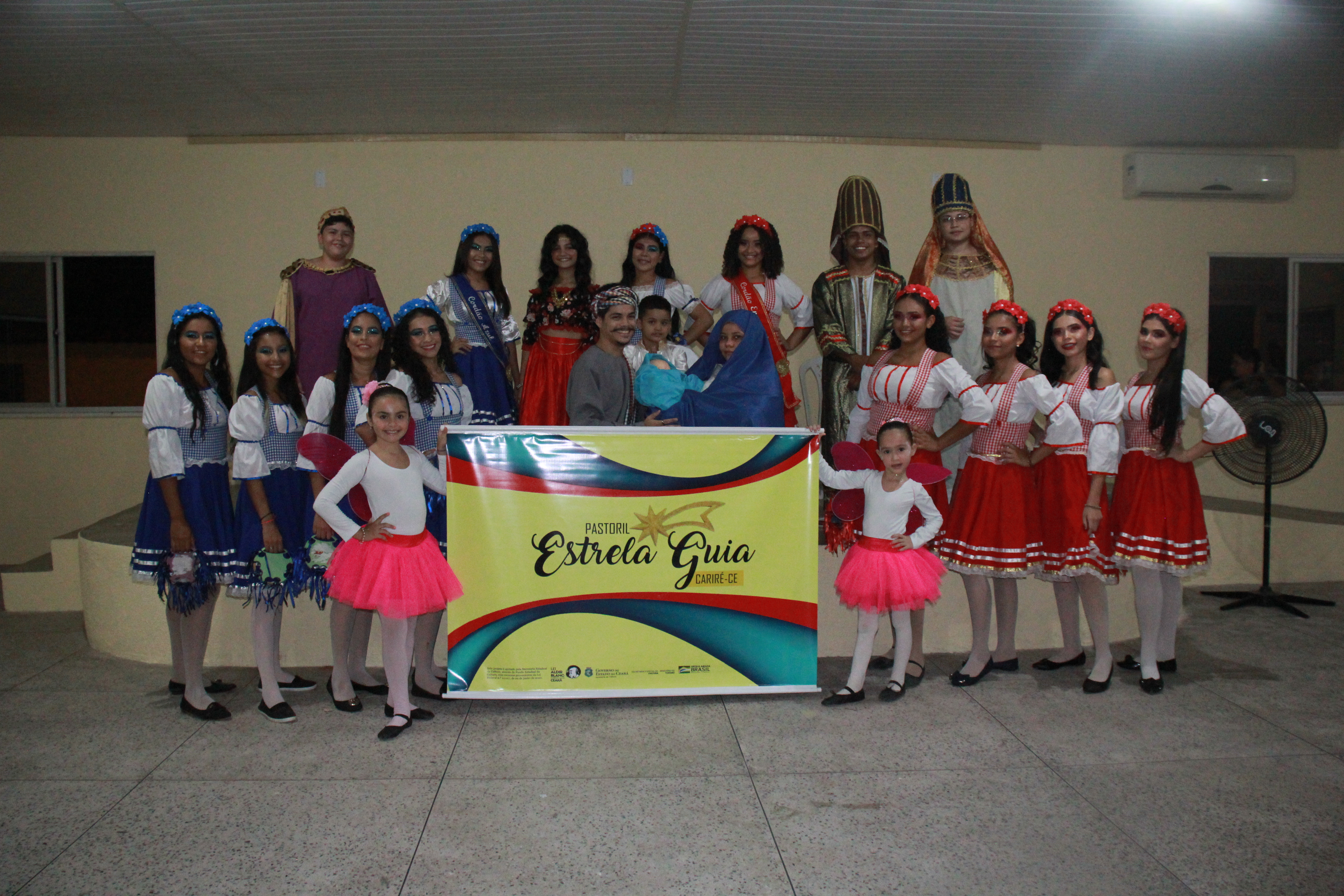 Aproximadamente 25 pessoas formam o nosso pastoril, entre dançarinas, atores e produção.