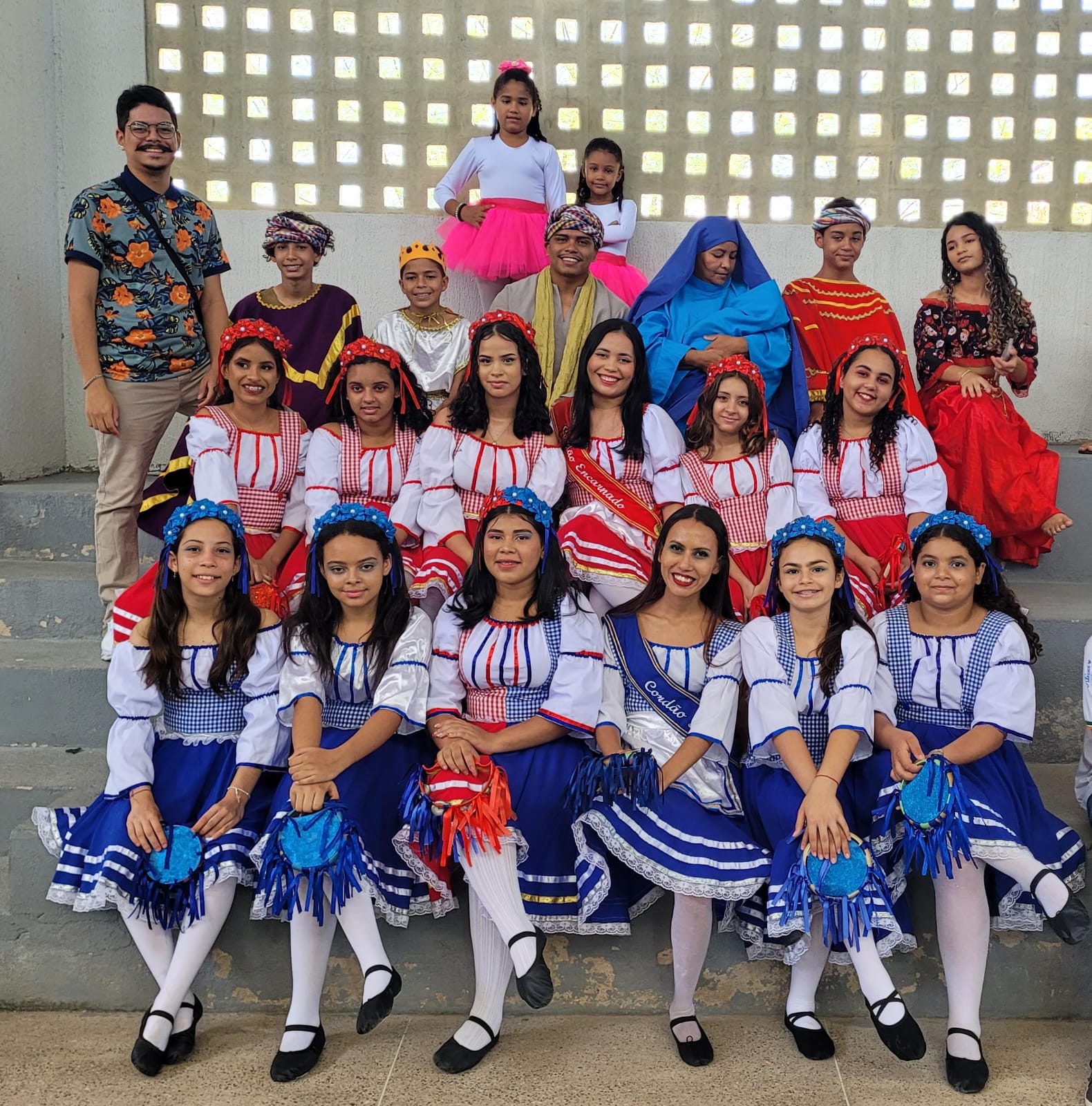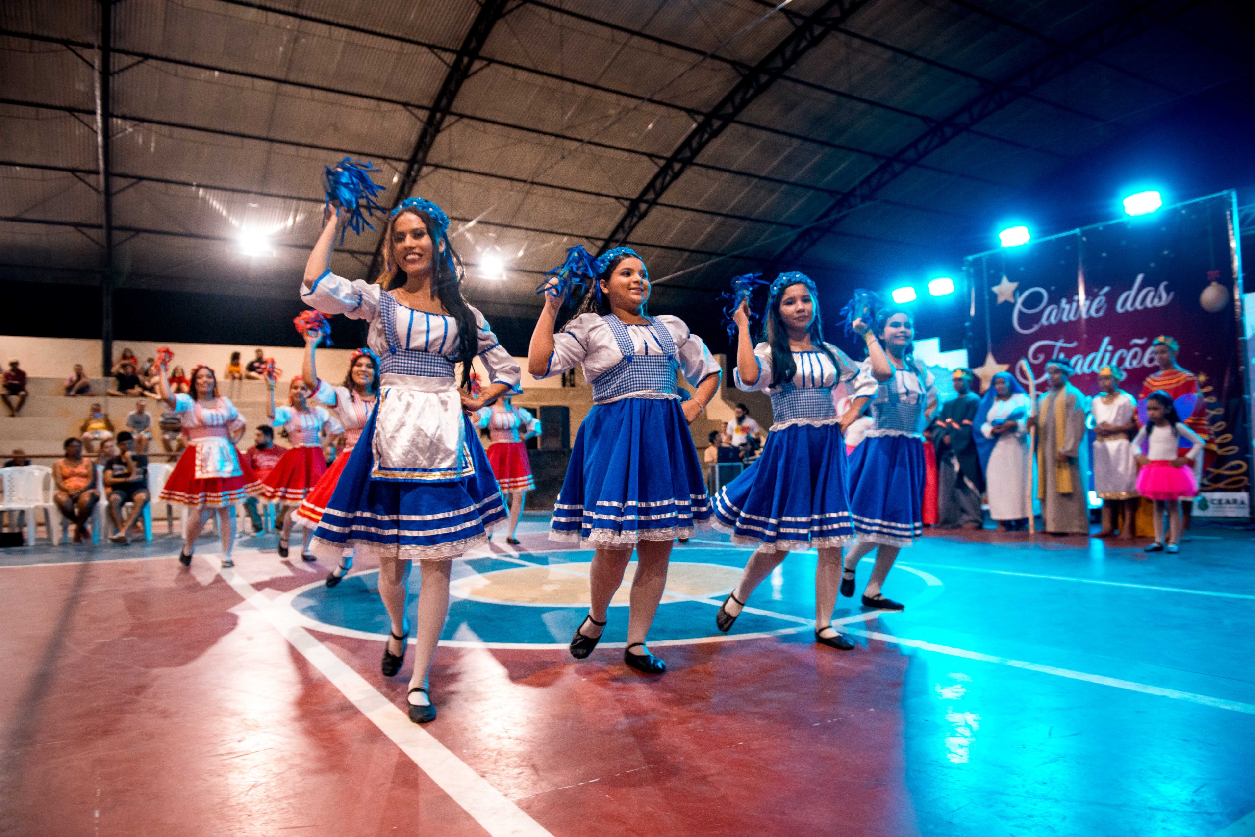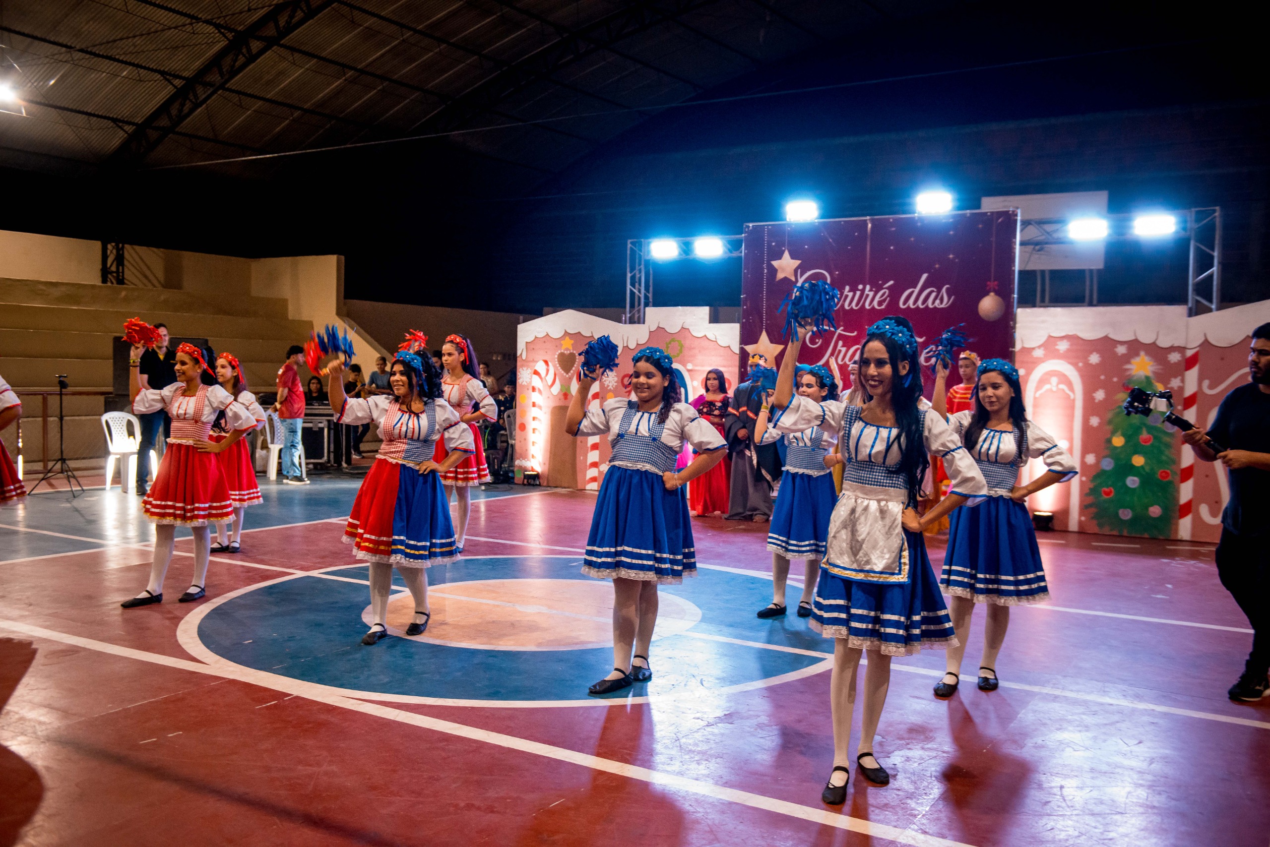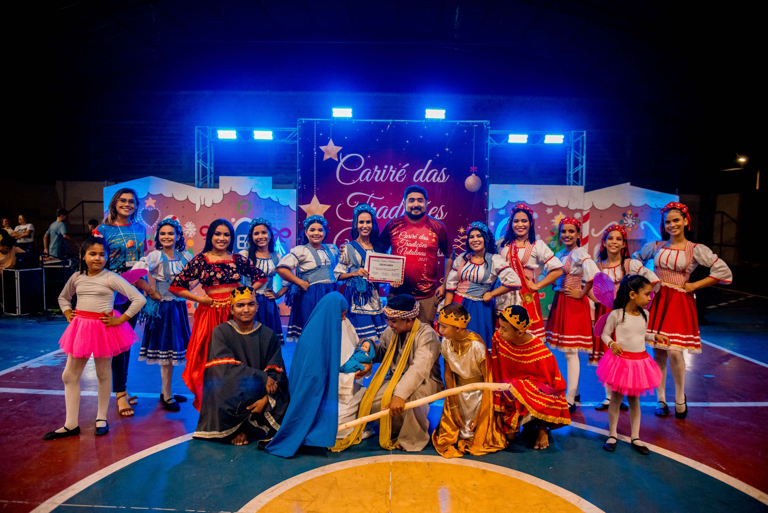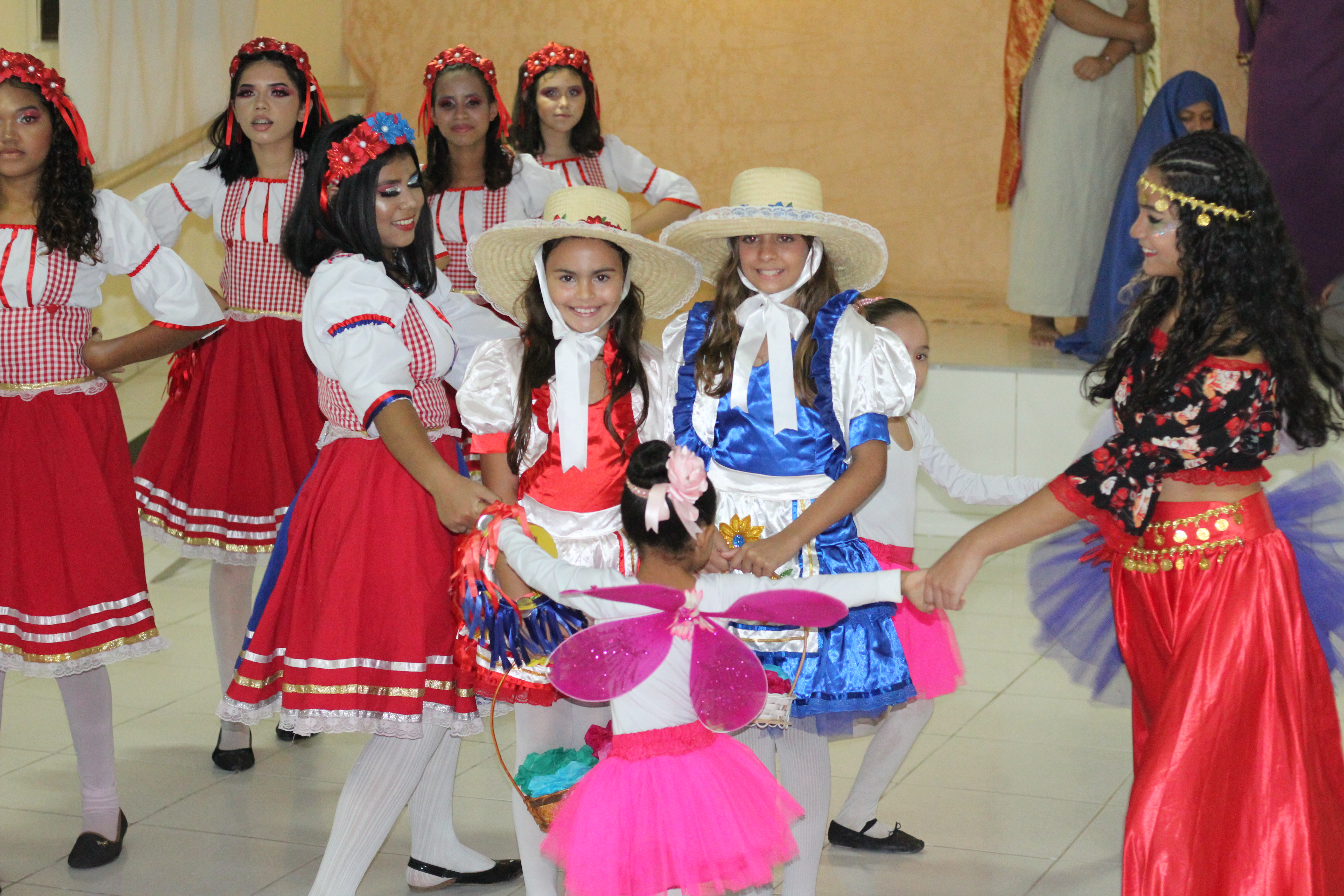 Aproximadamente 25 pessoas formam o nosso pastoril, entre dançarinas, atores e produção.