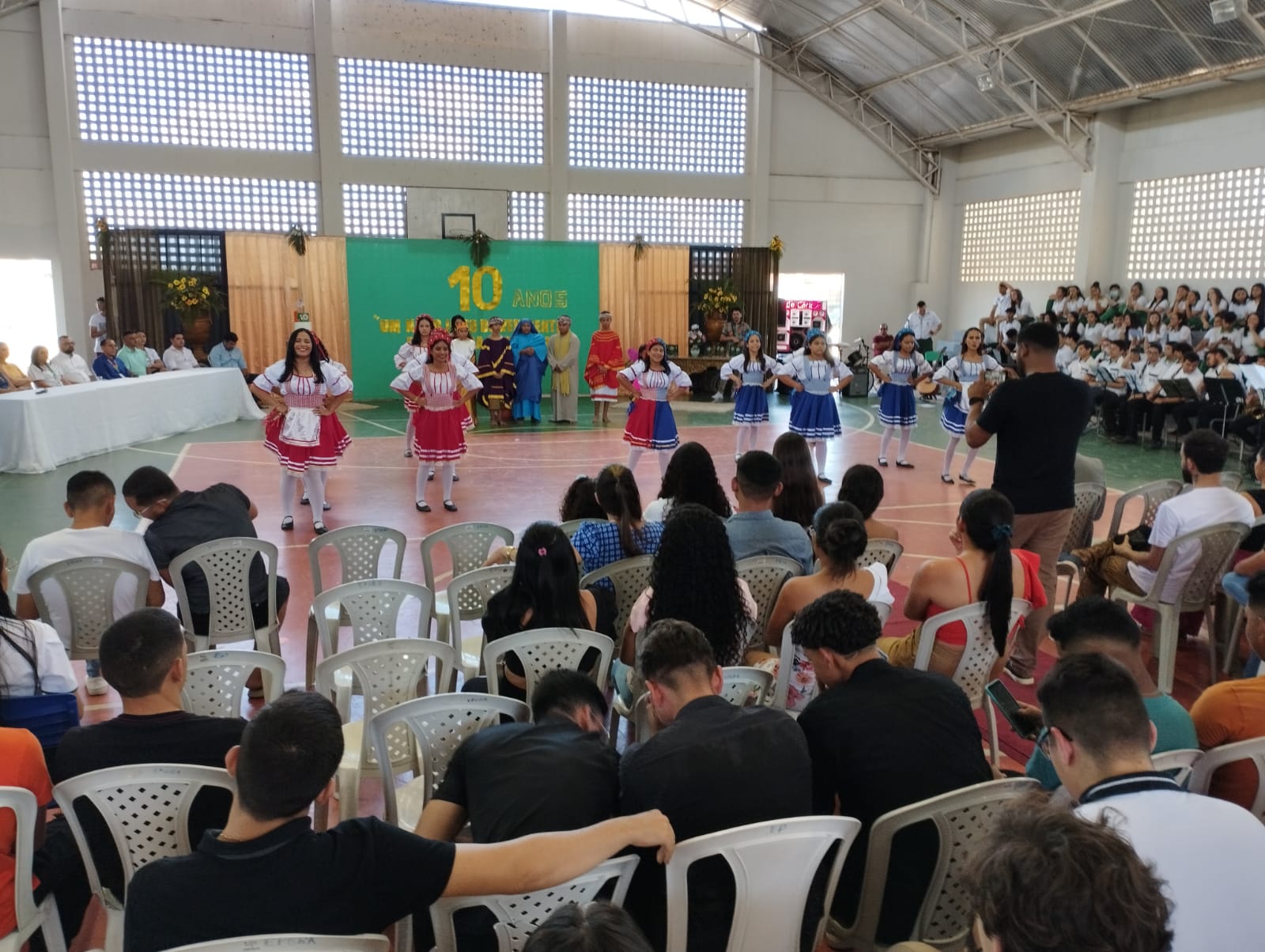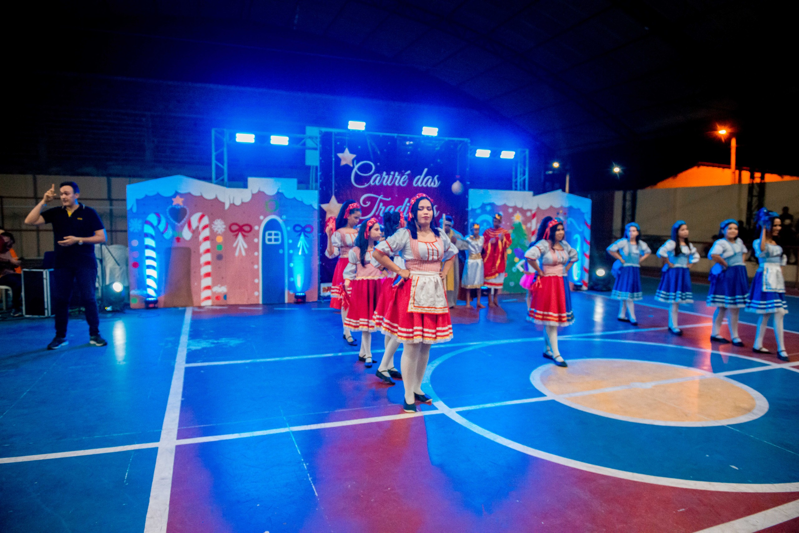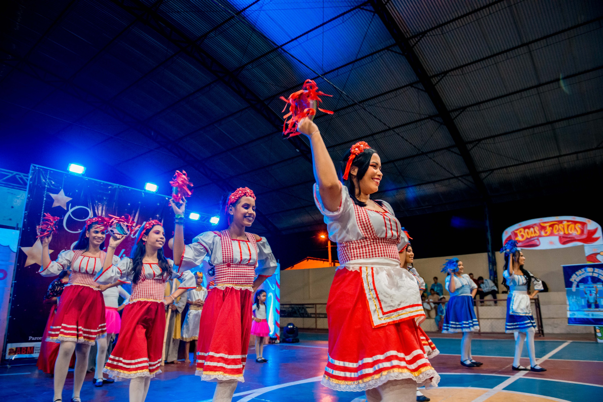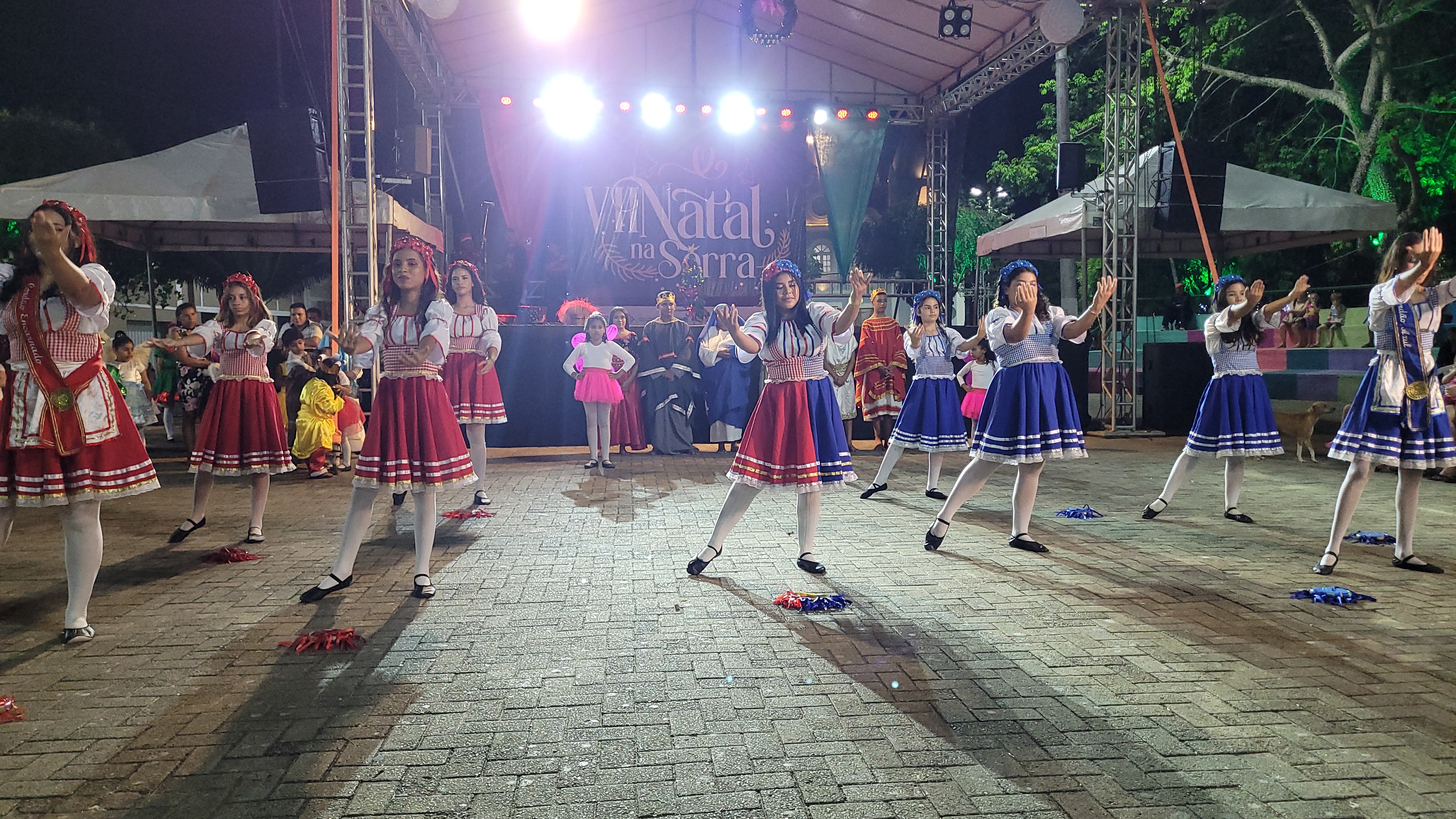 Aproximadamente 25 pessoas formam o nosso pastoril, entre dançarinas, atores e produção.
