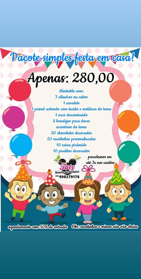 SOMOS UMA ENPRESA DE DEOCRACAO DE FESTA INFANTIL E ADULTA,,ESTAMOS NO MERCADO A 8 ANOS ,,TRABALHAMOS COM BATIZADO LEMBTANCAS E DOCES E LEMBRANCAS.EU JOSIEL AGAPITO DE SOUSA E MINHA ESPOSA TATYANA PAULA DE CARVALHO BARROS ,,,TOMAMOS A FRENTE DE NOSSA EMPRESSA. SOMOS DE SANTA QUITERIA CEARA...FICAMOS NO CENTRO DA CIDADE.665 AV CORONEL MANOEL ALVES